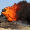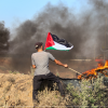 متظاهرون فلسطينيون يحرقون الإطارات على الحدود الشرقية لمدينة غزة احتجاجا على العملية العسكرية الإسرا