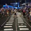 متظاهرون يشاركون في احتجاج على مشروع إصلاح النظام القضائي الذي تدعمه حكومة رئيس الوزراء بنيامين نتين