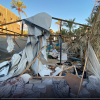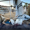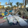 آثار الدمار الذي لحق بخيمة استهدفتها طائرات الاحتلال الاسرائيلي في دير البلح وسط قطاع غزة.