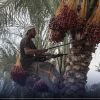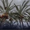 مزارعون فلسطينيون يحصدون قطوف البلح في مزرعتهم في دير البلح وسط قطاع غزة.