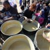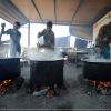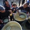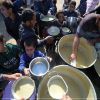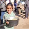 فلسطينييون يتجمهرون للحصول على وجبة طعام من تكية خيرية في دير البلح وسط قطاع غزة