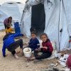 مئات الأسر النازحة من بيت لاهيا شمال قطاع غزة تعيش ظروفاً صعبة في خيام مؤقتة بمدينة غزة