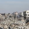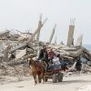 مواطنون ينصبون خياماً على أنقاض منازلهم المدمرة في مدينة غزة