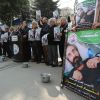 احتجاج تضامني مع الأسير المضرب عن الطعام منذ 139 يومًا هشام أبو هواش أمام مقر المفوض السامي في غزة.