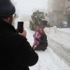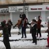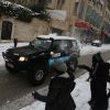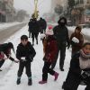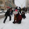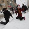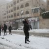 أطفال فلسطينيون يلعبون بالثلج خلال العاصفة الثلجية التي غطت مدن الضفة الغربية