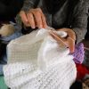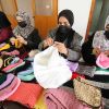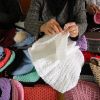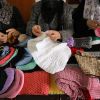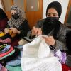نساء فلسطينيات ينسجن الملابس الصوفية في خانيونس جنوب قطاع غزة.