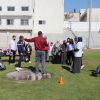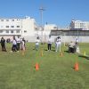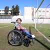 يشارك الفلسطينيون في نشاط رياضي خلال مبادرة دمج الأشخاص ذوي الإعاقة بمدينة غزة