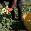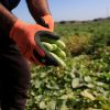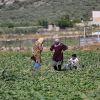مزارعون فلسطينيون يحصدون ثعبان الخيار "فاقوس" في حقل في قرية دير بلوط بالضفة الغربية ، بالقرب من بلد