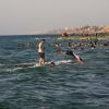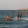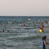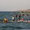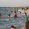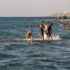 يستمتع الفلسطينيون بوقتهم على شاطئ بحر دير البلح ، وسط قطاع غزة.