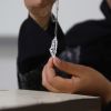 الفنانة الفلسطينية سلسبيل حسونة ، 23 سنة ، تصنع إكسسوارات يدوية من المعادن الثمينة في منزلها في مدين