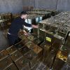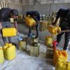 عمال فلسطينيون يجهزون زيت الزيتون لتصديره لدول الخليج في خانيونس جنوب قطاع غزة