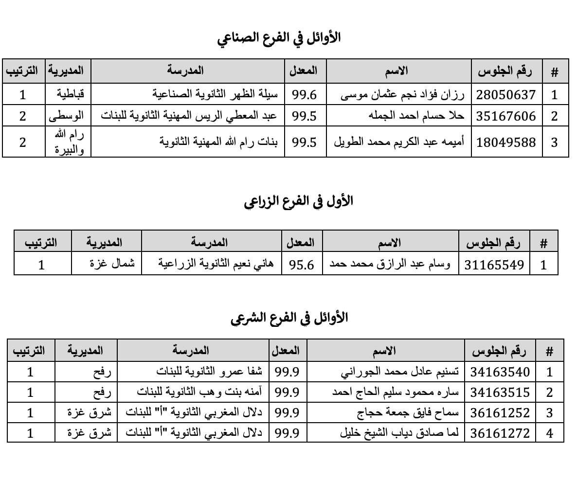 وفيما يلي نص بيان نتائج امتحان توجيهي فلسطين 2023: