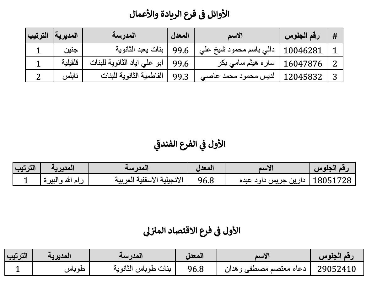 اليوم يعلو منسوب الأمل على ما عداه، وإذ نبارك لكم النجاح، فإننا على العهد نبقى، حيث المكان فلسطين، وحيث الزمان زمان الفعل المقترن بالانتصار للوطن، ومن أجلكم نبذل كل جهد ممكن ليظل التعليم رافعة لطموحنا وأداة للتحرر والاستقلال. فلكم أولاً، ولذويكم ولمدارسكم (مديرين، ومعلمين) نبارك، وبورك اجتهادكم ونتمنى لكم مستقبلا زاهرا... ولأبنائنا الذين لم يستكملوا كل الأمنيات بالتوفيق في الدورة الثانية، والآن نعلن النتائج على النحو الآتي: